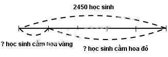 Trên sân vận động có 2450 học sinh cầm hoa đỏ hoặc hoa vàng để xếp hình, trong đó có 1/5 số học sinh cầm hoa vàng. Hỏi có bao nhiêu học sinh cầm hoa đỏ ?