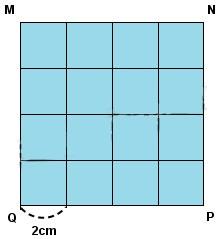 Hình vuông MNPQ và hình chữ nhật ABCD đều được ghép từ 16 miếng bìa hình vuông cạnh 2cm (như hình vẽ).