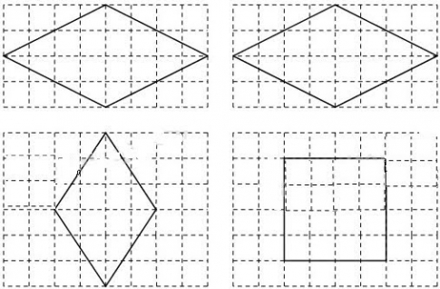 Vẽ thêm hai đường thẳng để được một hình thoi hoặc một hình vuông