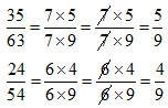là: \({{14} \over {18}};{{35} \over {45}}\)