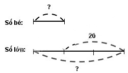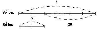 Hiệu của 2 số là 20 nên ta tính được số lớn là: