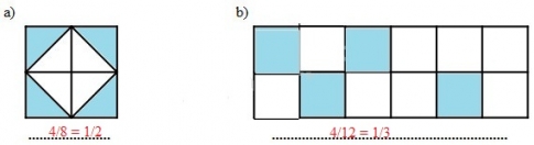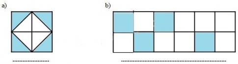 Viết phân số tối giản chỉ phần đã tô đậm của mỗi hinh sau: