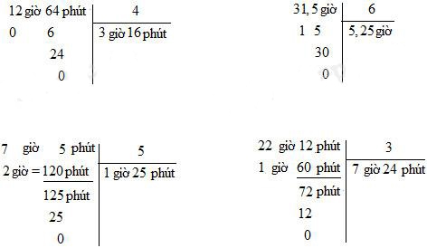 b. 63 phút 4 giây – 32 phút 16 giây : 4 = 63 phút 4 giây – 8 phút 4 giây