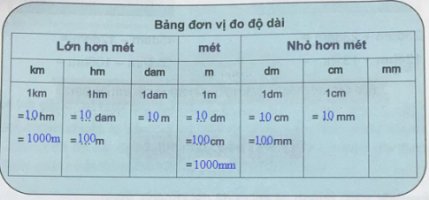 b. Đọc tên các đơn vị đo độ dài từ bé đến lớn là: mi-li-mét, xăng-ti-mét, đề-xi-mét, mét, đề-ca-mét, héc-tô-mét, ki-lô-mét.