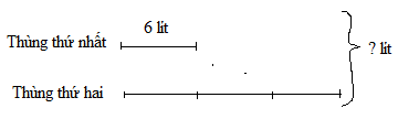 Thùng thứ nhất đựng 6l nước, thùng thứ hai đựng gấp 3 lần số lít nước ở thùng thứ nhất. Hỏi cả hai thùng đựng bao nhiêu lít nước?