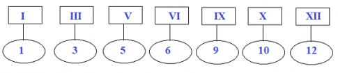 | Số La Mã | I | II | III | IV | V | VI | VII | VIII | IX | X | XI | XII |