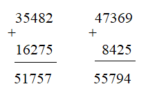 Em hãy nghỉ ra một tình huống thực tế có sử dụng phép cộng hai số có đến 5 chữ số. Viết tình huống và câu trả lời: