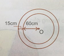 Hai hình tròn có cùng tâm O như hình bên. Chu vi hình tròn lớn dài hơn chu vi hình tròn bé bao nhiêu xăng-ti-mét?
