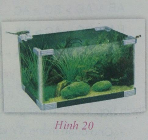 c, Một bể cá có dạng hình hộp chữ nhật, không nắp, chứa gần đầy nước (h.20). Ở một góc, thuộc mặt trên của bể, có một con thạch sùng, còn ở góc đối diện có một con kiến. Hỏi con thạch sùng sẽ chạy theo lối nào nhất để đến chỗ con kiến?