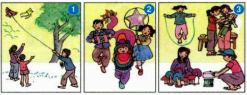 Câu 1. Viết tên đồ chơi hoặc trò chơi được tả trong các bức tranh sau: