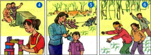 - Trò chơi: đá banh, bắn bi, ngồi xích đu, chơi cờ, chơi với búp bê...