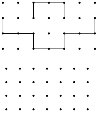 b) Cho biết bốn chấm tạo thành một ô vuông có diện tịch 1