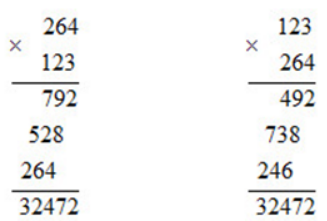 - Các kết quả của hai phép nhân trên bằng nhau.![]()