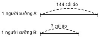 Phân xưởng A có 84 người, mỗi người dệt được 144 cái áo, phân xưởng B có 112 người và dệt được số áo của phân xưởng A. Hỏi trung bình mỗi người ở phân xưởng B dệt được bao nhiêu cái áo?