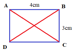 a. Vẽ hình chữ nhật ABCD có chiều dài 4cm, chiều rộng 3cm. Sau đó nối đỉnh A với đỉnh C, đỉnh B với đỉnh D.