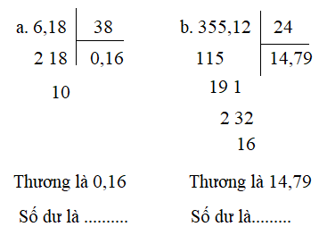 Giải vở bài tập toán 5 trang 78 bài 63: Chia một số thập phân cho một số tự nhiên