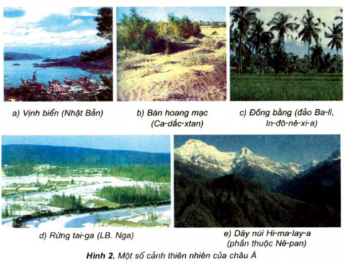1. Dãy Thiên Sơn 2. Dãy Hi-ma-lay-a 3. Dãy Côn Luân | 1. Đồng bằng Hoa Bắc 2. Đồng bằng Ấn – Hằng 3. Đồng bằng sông Mê Công |