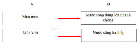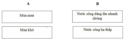 Vẽ mũi tên nối ô chữ ở cột A với các ô chữ ở cột B để thể hiện mối quan hệ giữa khí hậu với lực lượng nước của sông.