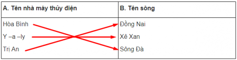 Nối tên nhà máy thủy điện với tên sông có nhà máy thủy điện đó.