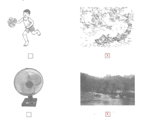 Đánh dấu × vào ☐ dưới hình có phương tiện, máy móc sử dụng năng lượng nước chảy.