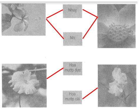 Hoa | Trên cùng một hoa có cả nhị và nhụy | Trên một hoa chỉ có nhị hoặc nhụy |
