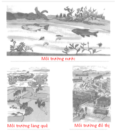 môi trường đô thị; môi trường làng quê; môi trường nước; môi trường rừng