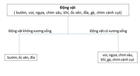 b, Vẽ sơ đồ phân chia các đại diện trên thành 2 nhóm, nhóm động vật có xương sống và động vật không có xương sống