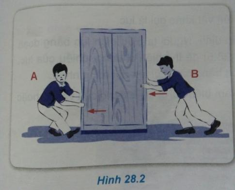 a) Trong hình 28.2: hai bạn di chuyển cái tủ.