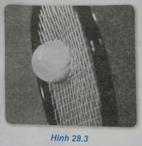 b) Hãy quan sát ảnh chụp cái vớt đập vào quả bóng (hình 28.3).