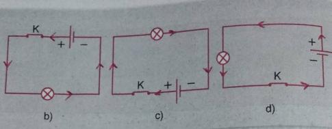 2. Hãy dùng mũi tên để biểu diễn chiều dòng điện trong các sơ đồ mạch điện hình 20.5 b, c, d
