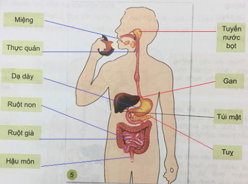 Hãy nối tên các bộ phận của cơ quan tiêu hóa với hình vẽ cho phù hợp:
