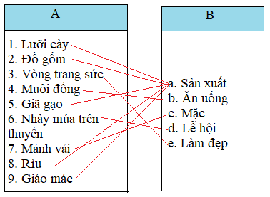Hãy nối ý ở cột A với cột B cho phù hợp