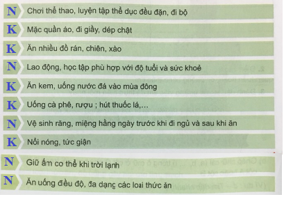 Hãy viết chữ N vào việc nên làm, chữ K vào việc không nên làm?