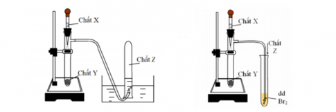 b. Dẫn từ từ đến dư chất Z vừa mới điều chế vào dung dịch brom như hình trên. Nêu hiện tượng và viết phương trình hóa học xảy ra nếu có