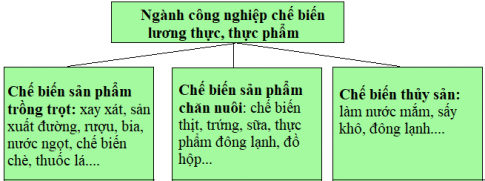 Hoàn thành sơ đồ cơ cấu các ngành công nghiệp chế biến lương thực thực phẩm theo yêu cầu sau: