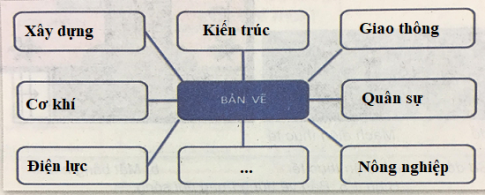 Hoàn thiện sơ đồ về các lĩnh vực dùng bản vẽ kĩ thuật.