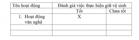 Kể những việc em đã làm để giữ vệ sinh trường học?Hãy hoàn thành phiếu tự đánh giá theo gợi ý dưới đây và chia sẻ với các bạn