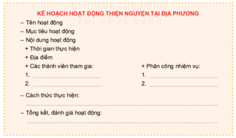 •Thảo luận để lập kế hoạch thiện nguyện theo mẫu gợi ý sau: