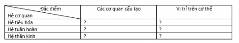 2. Dựa vào kết quả quan sát mô hình hoặc tranh, ảnh một số hệ cơ quan trong cơ thể người, hoàn thành bảng theo mẫu sau: