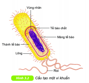 Quan sát hình 3.2, trình bày cấu tạo của tế bào vi khuẩn. Vì sao nói vi khuẩn là sinh vật có cấu tạo cơ thể đơn giản nhất trong thế giới sống?