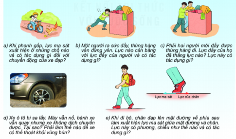 Hãy chỉ ra lực ma sát trong các tình huống sau đây và nói rõ có tác dụng cản trở hay thúc đẩy chuyển động