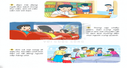 Nêu những quy định cần tuân thủ ở nơi công cộng trong tranh trên: