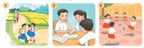 - 1: Các bạn đang cùng nhau đi học