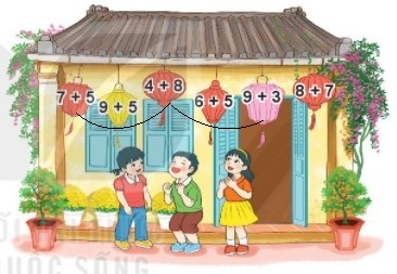 Đèn lồng màu đỏ ghi phép tính có kết quả bé nhất là: 6 + 5