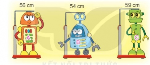 Rô-bốt B thấp hơn rô-bốt C 5 cm