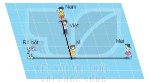 Giải: Các bạn đứng thẳng hàng là ( Nam, Việt Mi) và (Rôbot- Mi, Mai)