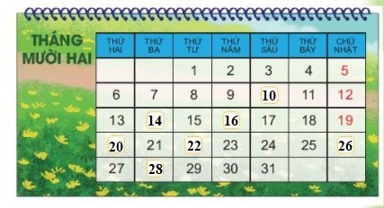 - Ngày đầu tiên của tháng 12 là thứ tư