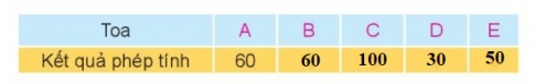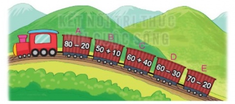 b) Những toa ghi phép tính có kết quả bé hơn 60 là: D; E