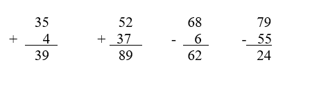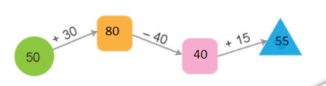 c) 50 + 20 = 70 d) 80 - 40 = 40