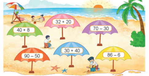 Những phép tính có kết quả lớn hơn 50: 30 + 40; 86 - 6
